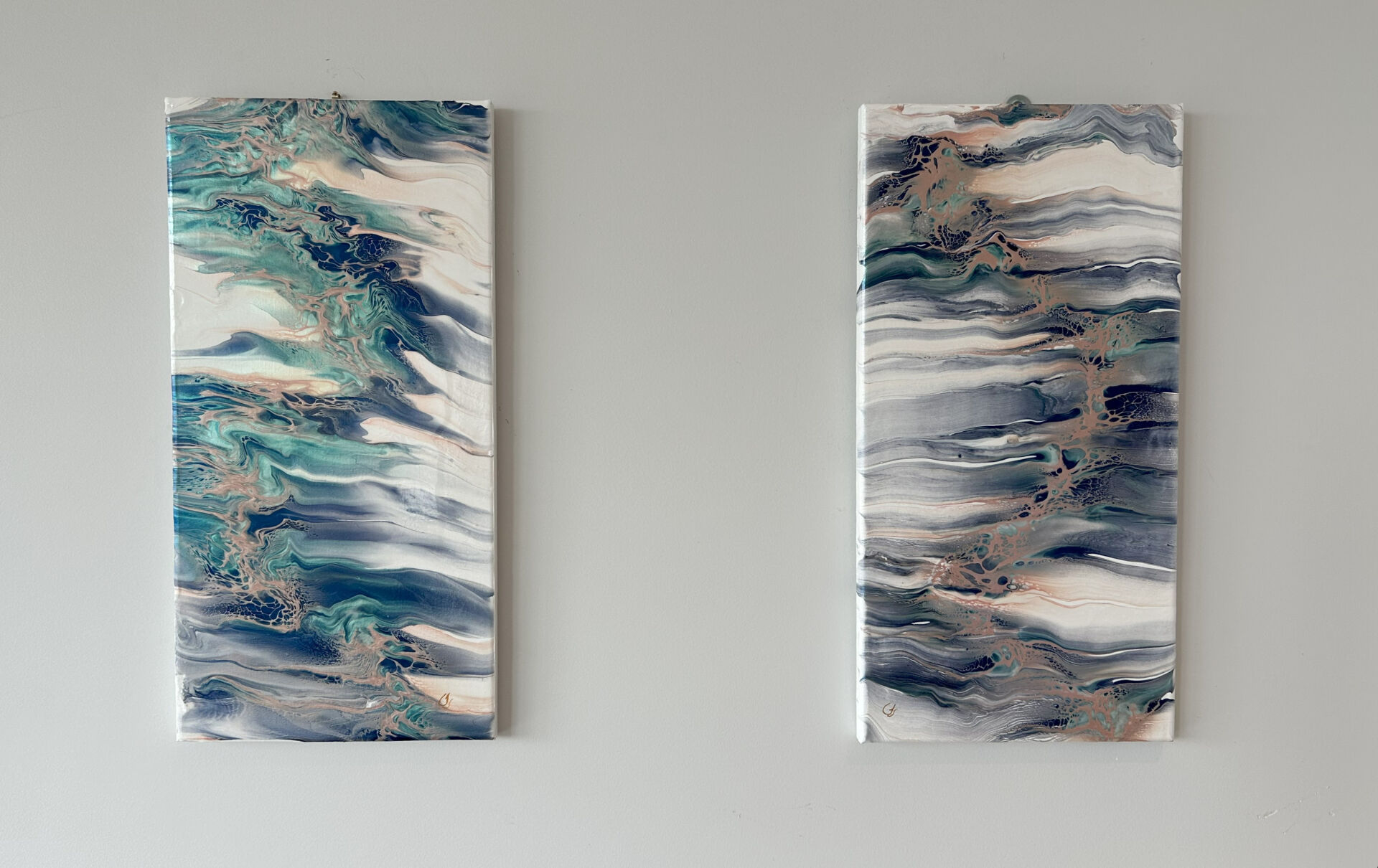Blue Mountains Series 2 of 2, fluid art on canvas by Artist Jackie Teer
