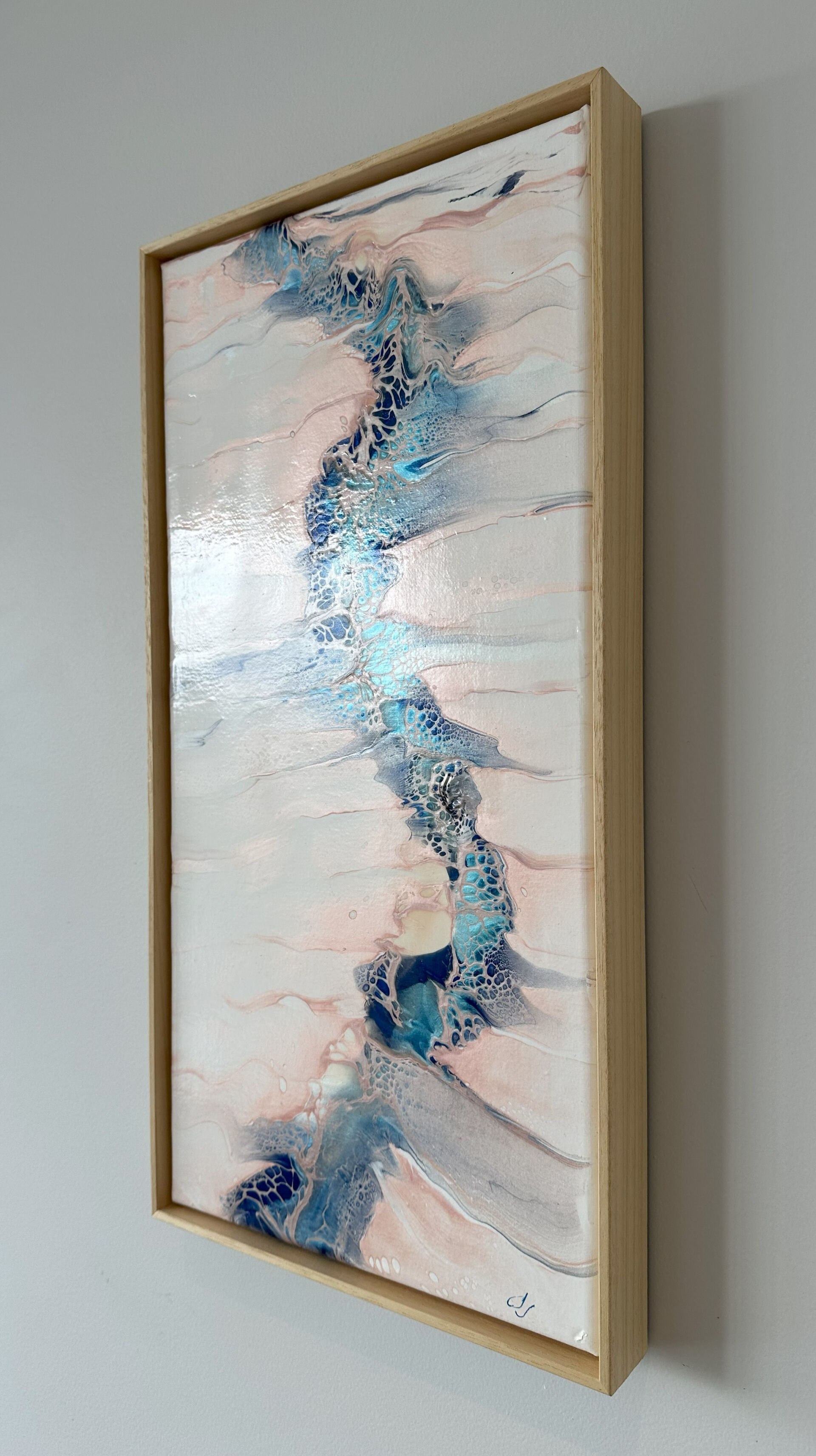 Blue Mountains Series - Triptych, fluid art on canvas by Artist Jackie Teer. Sand Dunes is framed in natural wood, Blue Mountains #1 and #2 are unframed.