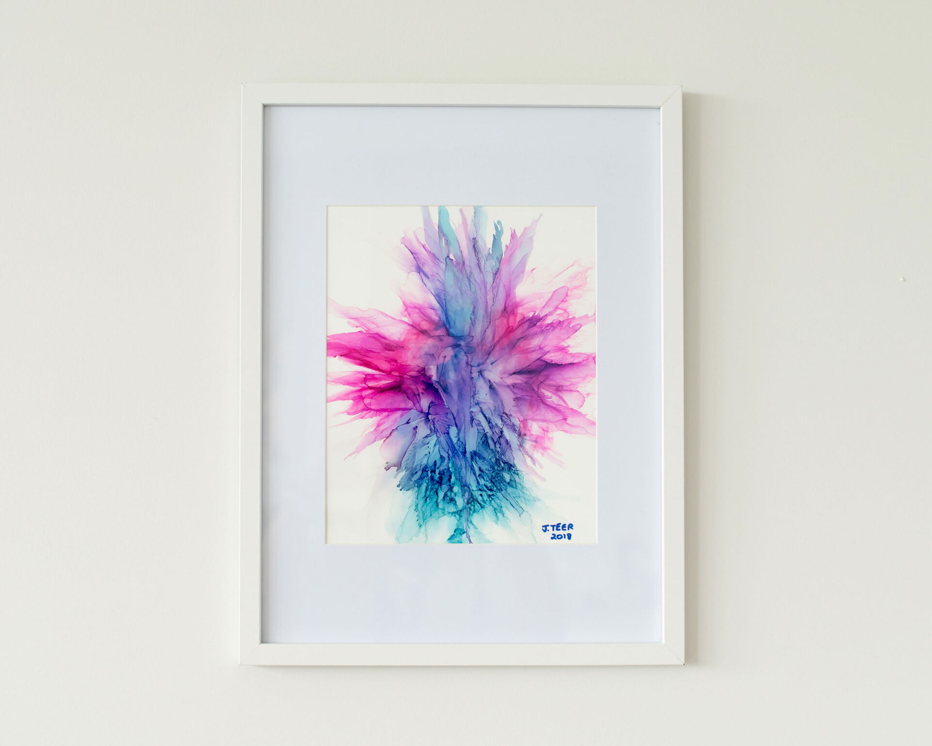 Colour Explosion Rectangle Alcohol ink on yupo paper by artist Jackie Teer