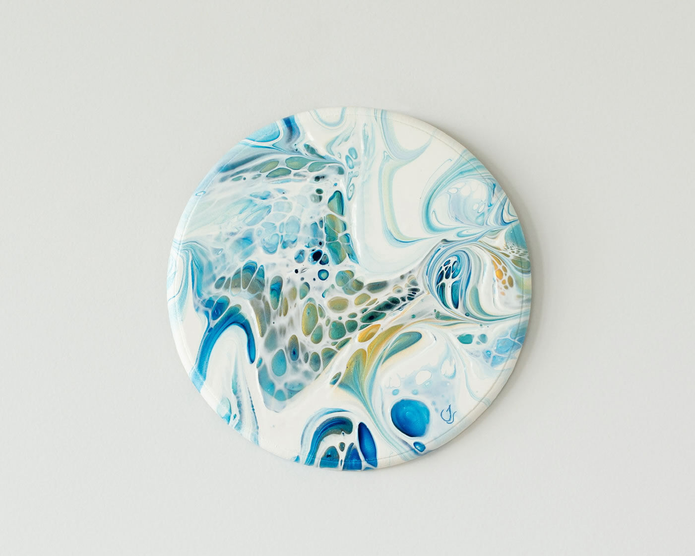 Glacial Waters Series - Round Fluid art on wood by artist Jackie Teer