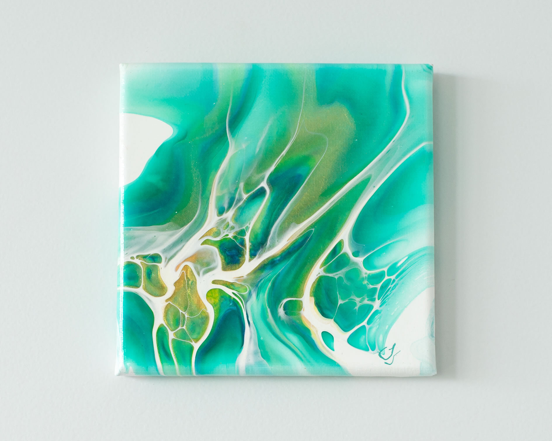 Mountain Stream and Ocean Current Series Square Fluid art on canvas by artist Jackie Teer
