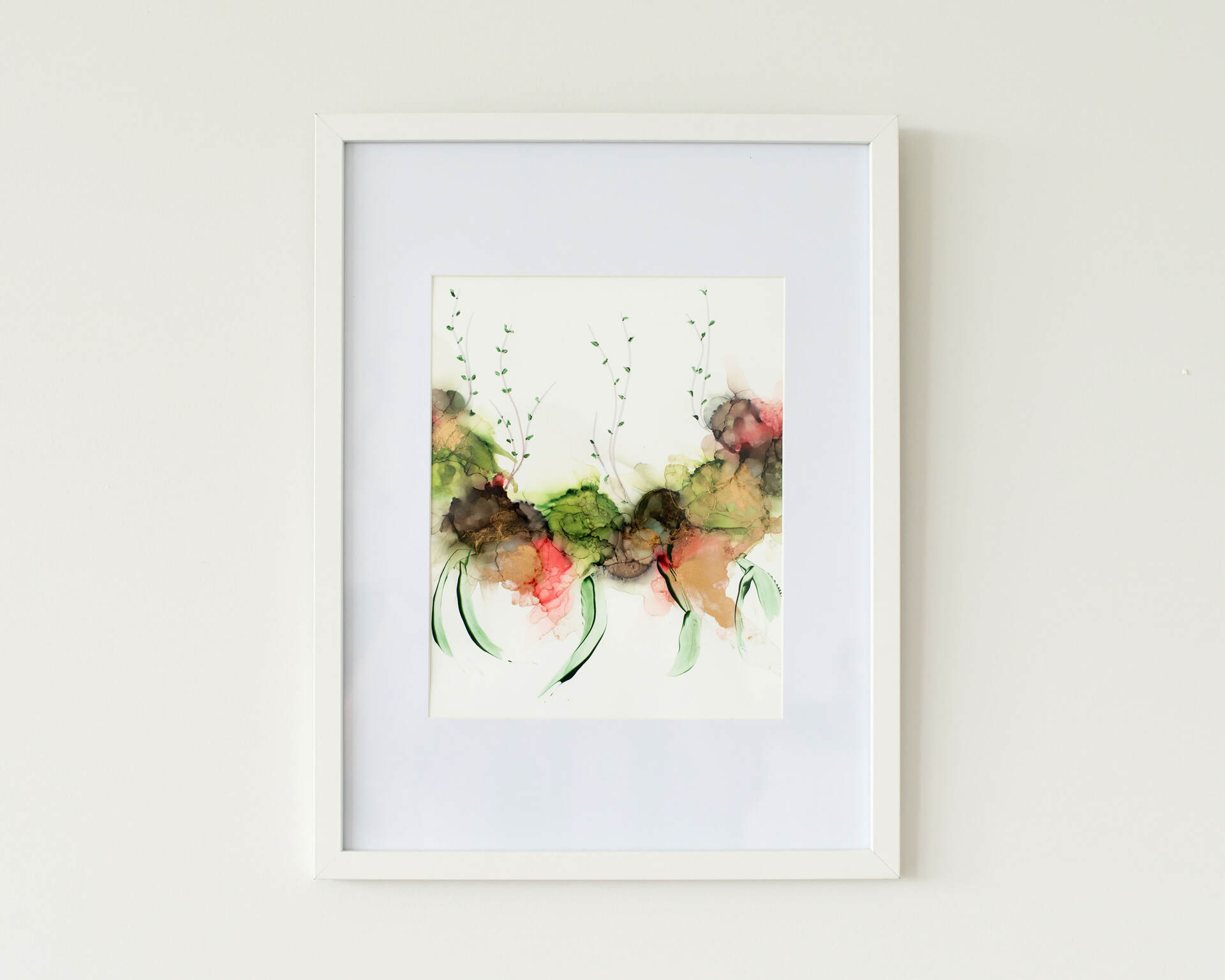 Nature's Garden Rectangle Alcohol ink on nara paper by artist Jackie Teer