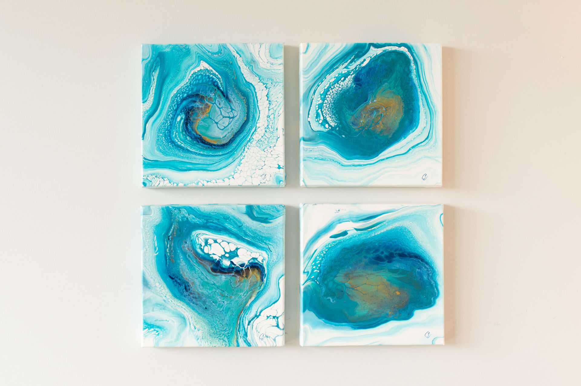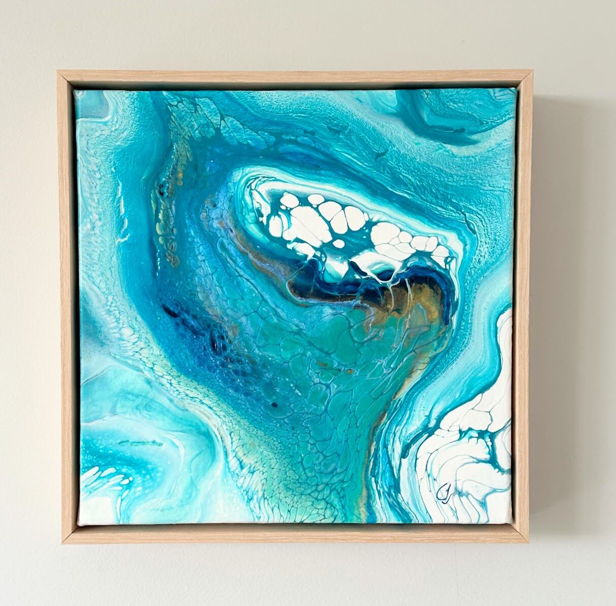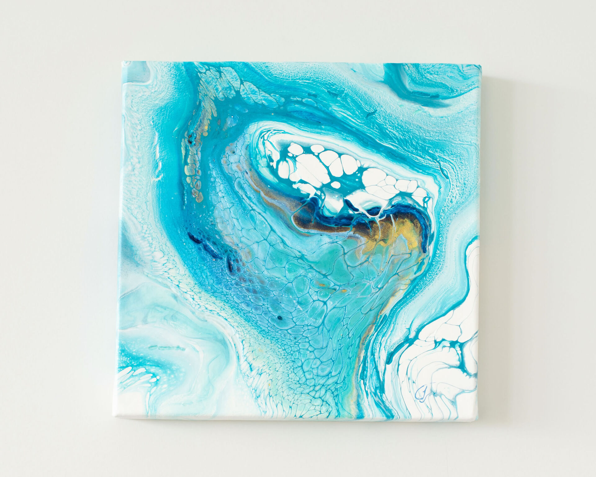 The Ocean Floor Series #1 - Square Fluid art on wood by artist Jackie Teer
