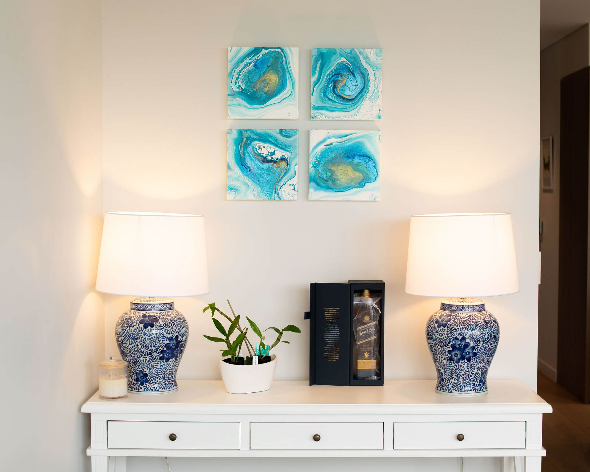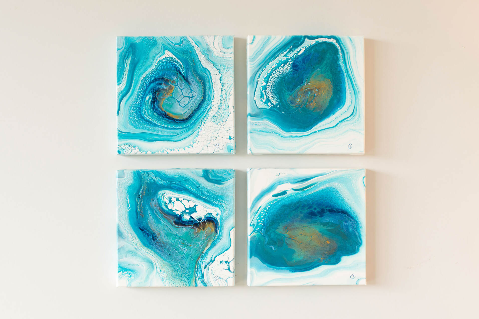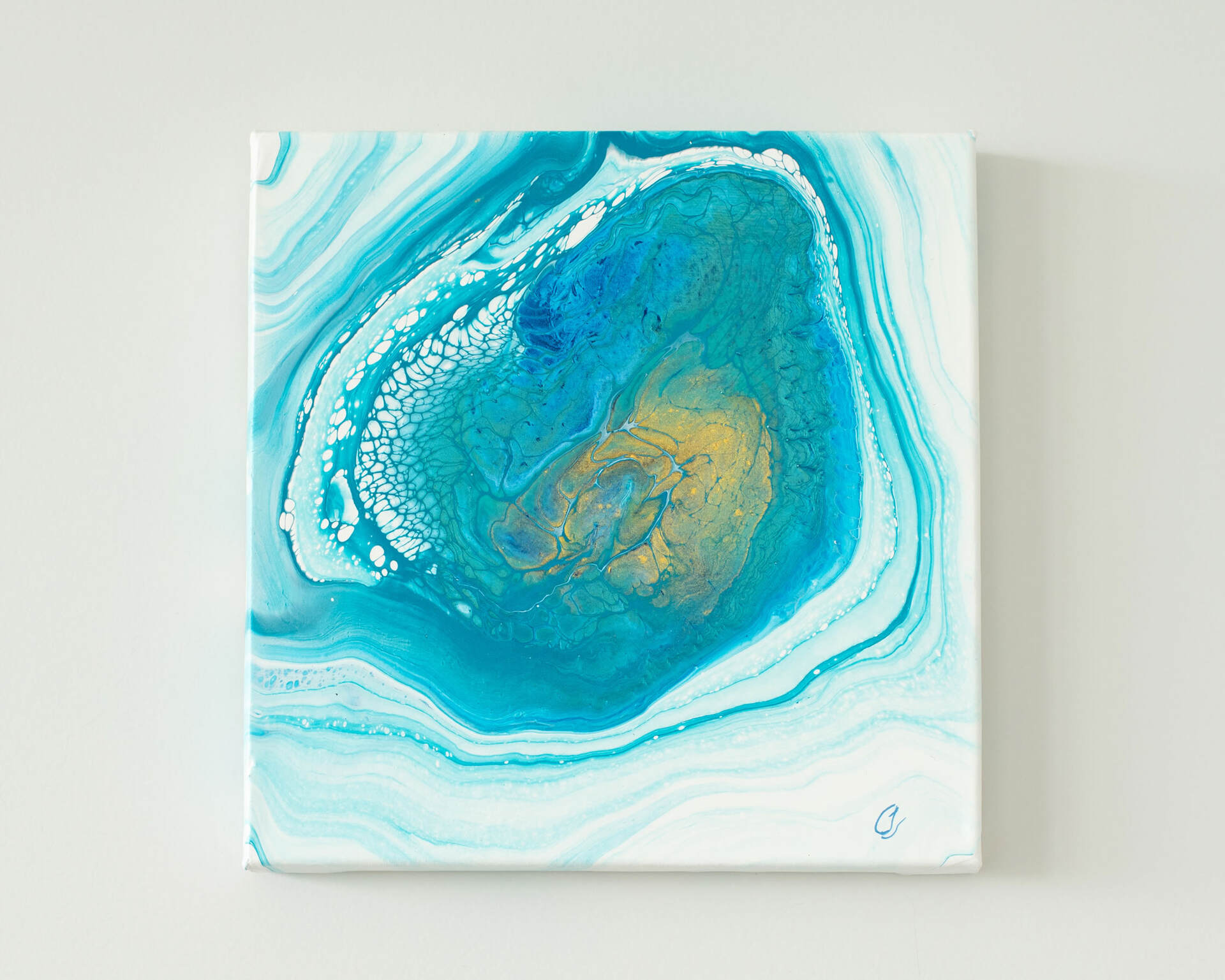 The Ocean Floor Series #2 - Square Fluid art on wood by artist Jackie Teer