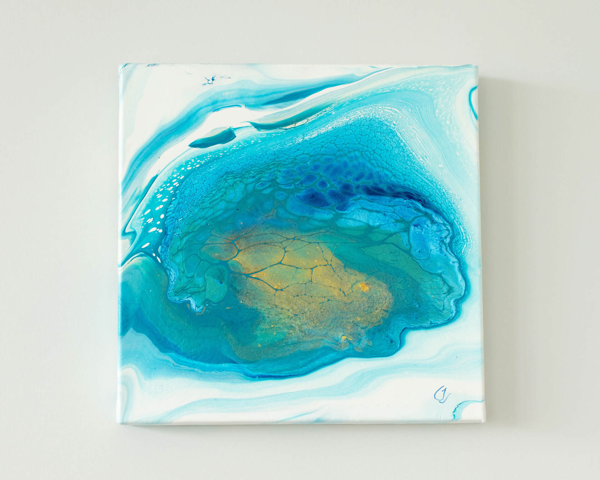 The Ocean Floor Series #4 - Square Fluid art on wood by artist Jackie Teer