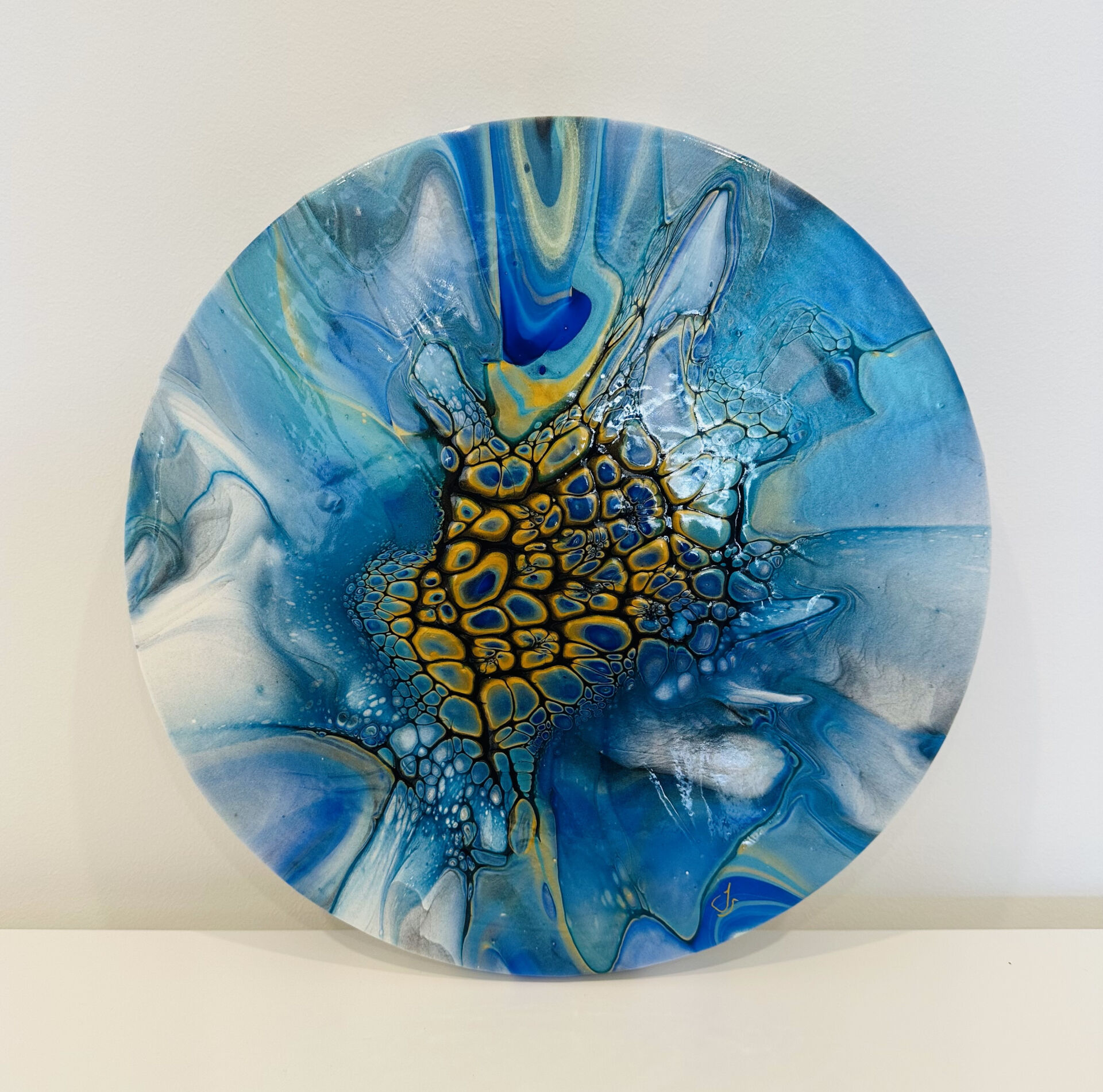 Fluid art on round canvas